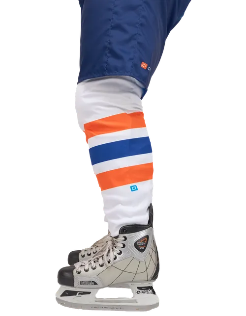 Die HS5 Pro Eishockeystutzen aus leicht elastischem Funktionsmaterial sind anatomisch geformt und individuell bedruckbar. Sie sitzen passgenau über den Schienbeinschonern.