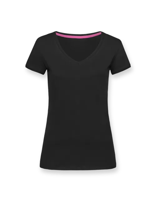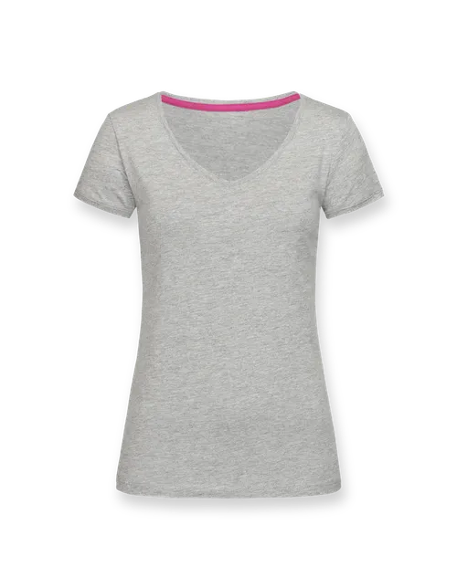 T-Shirt mit weitem V-Kragen für Damen. Die taillierte Passform ist für viele Körpertypen geeignet und lässt sich zu verschiedenen Outfits kombinieren.